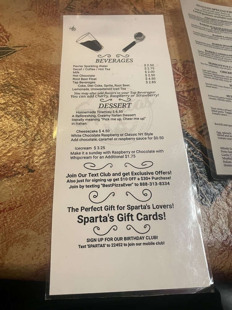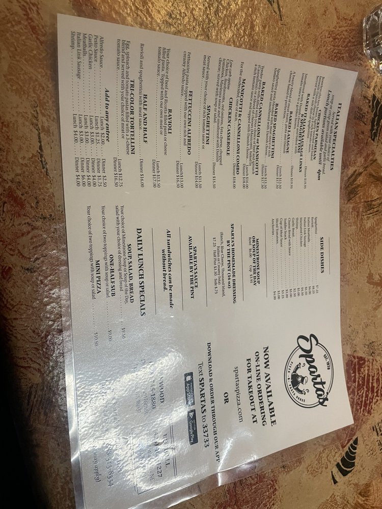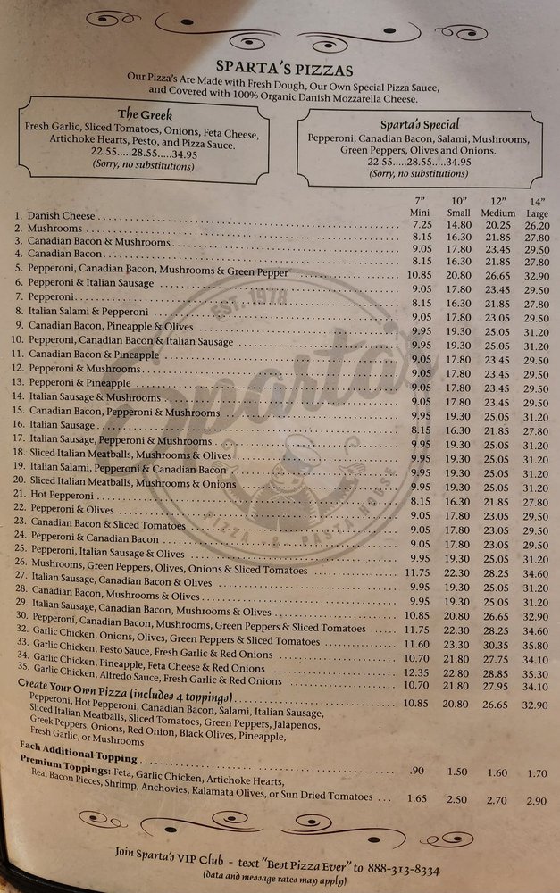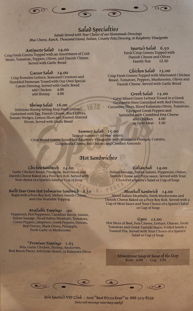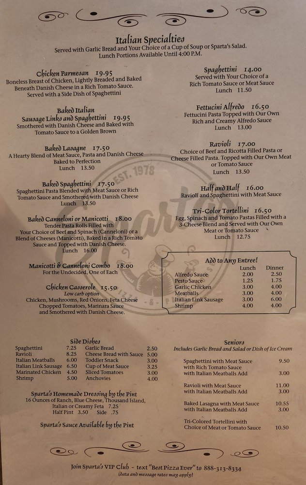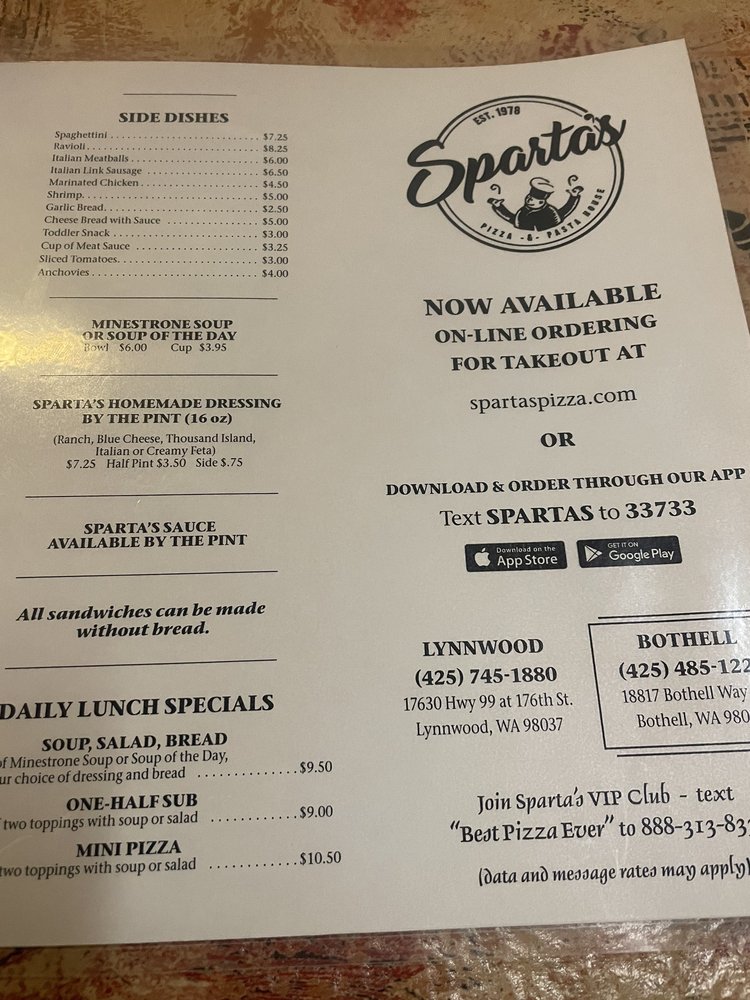 Sparta’s Pizza & Spaghetti House- Bothell Menu