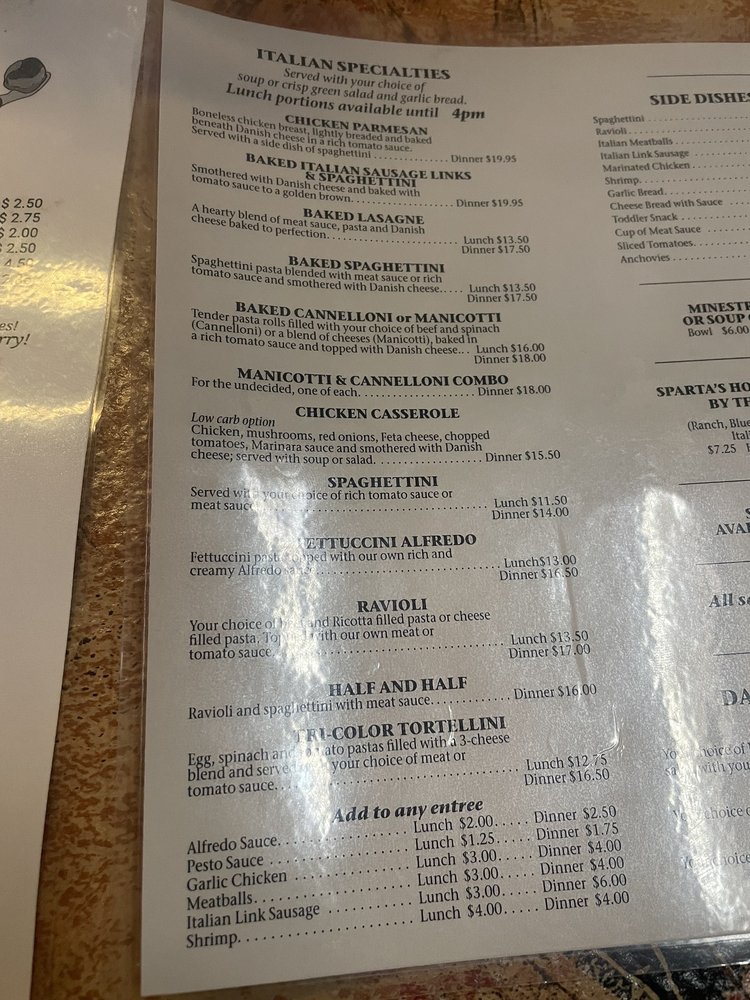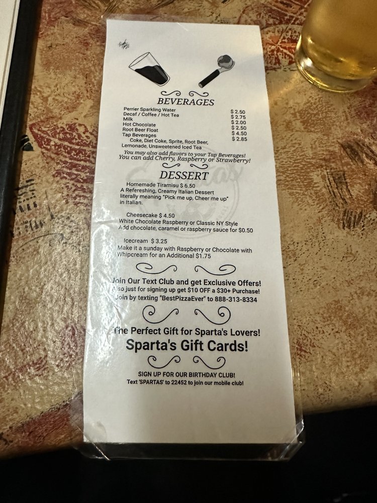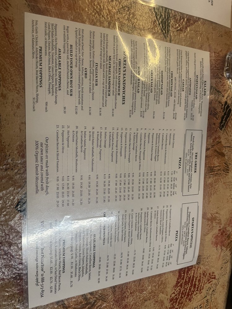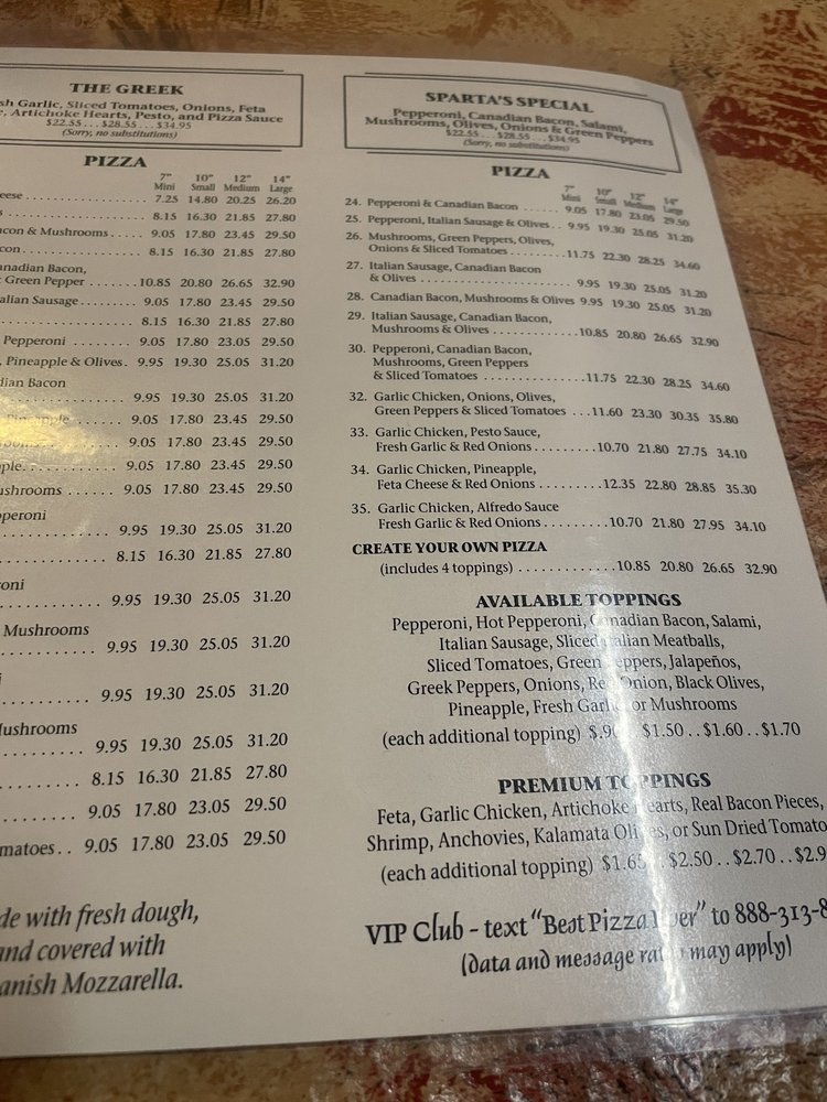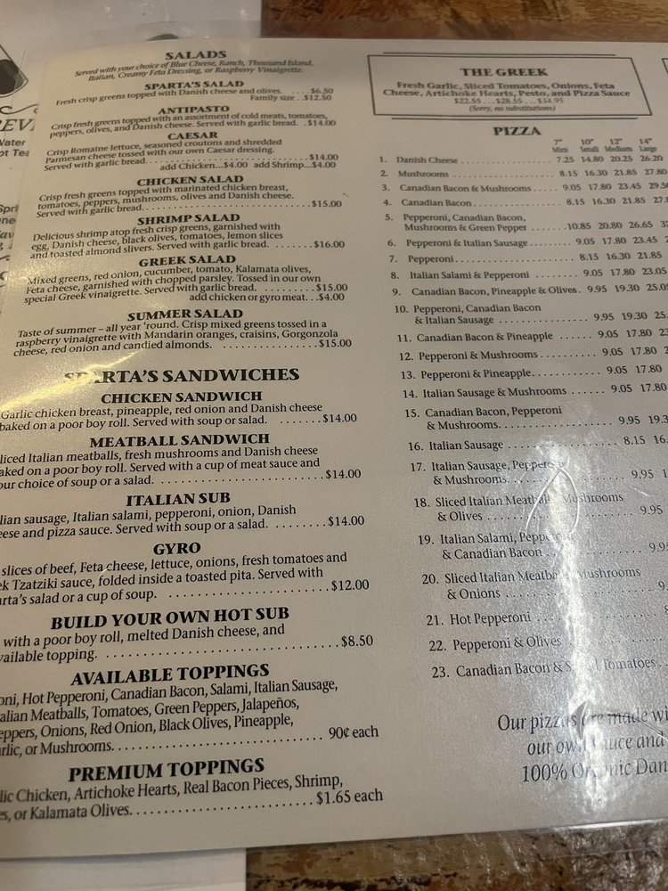 Sparta’s Pizza & Spaghetti House- Bothell Menu